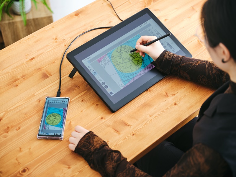 機身採用窄邊框和纖細的全平設計,不僅更緊湊小巧,同時搭配更大尺寸和更高解析度的 2.5K 螢幕,像素密度為全高淸 1.8~2 倍。螢幕以1670 萬色眞彩呈現,覆蓋高達 100% sRGB 及 99% DCI-P3 色域。螢幕外層採用全貼合技術,縮短筆尖與游標的距離,防眩光蝕刻玻璃不僅有效降低反光,減緩視覺疲勞,更為筆觸提供紙筆磨砂質感。23.8 吋機型可用於寬敞繪畫介面,16 吋機型在緊湊的辦公桌上也可輕巧使用 。